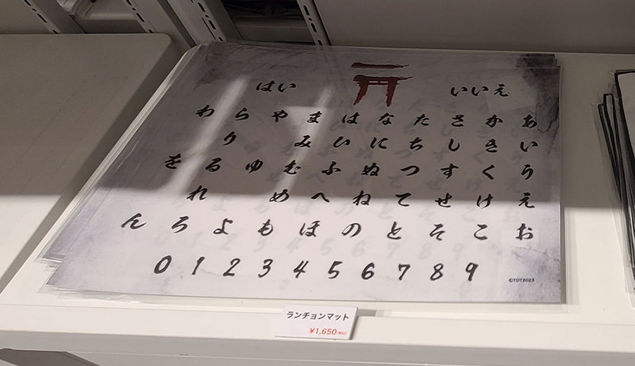 見終わって最後にグッズコーナーに寄ると、さりげなくとんでもないものが売られていてびっくり。コックリさんのランチョンマット。