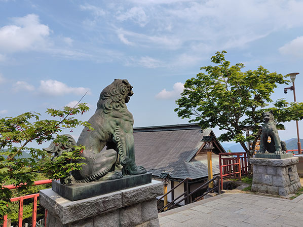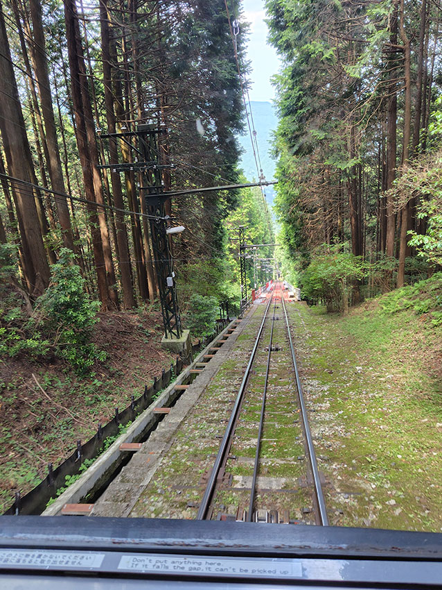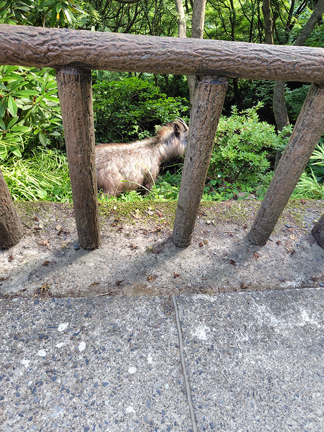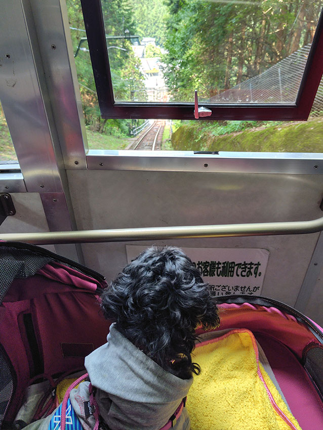 犬も乗れるケーブルカーで途中まで行き、終点からは徒歩で向かいます。野生のカモシカに遭遇したり、自然を満喫しながら向かっていましたが、途中からは階段がずっと続いていました。