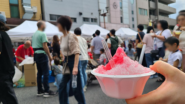 こうした昔ながらの風景にふれると、ほっとします。歩き回って少し休憩したくなり、かき氷を買ってひと息。