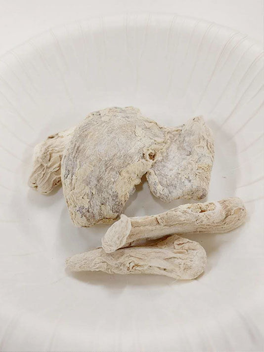 その名の通り乾燥させた生姜ですが、乾燥させると生の生姜にある成分「ジンゲオール」が変化した「ショウガオール」が増え、体を芯から温める効果が格段にアップするとのこと。