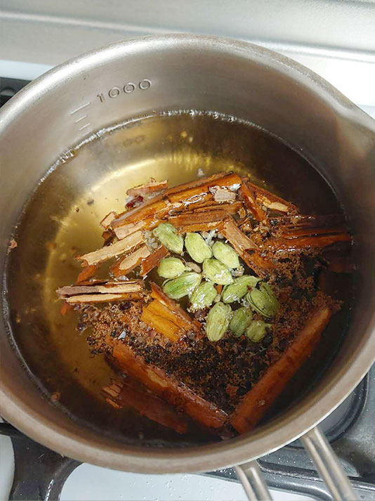 やはりスパイスを潰したり茶葉を煮出すのはその場でやるのが一番のようです。