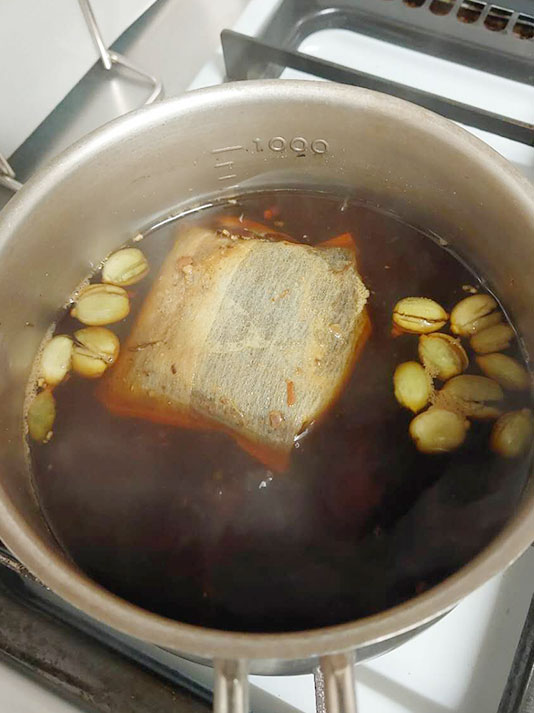 まずスパイス、ジンジャーをお湯が茶色くなるまで煮出します。