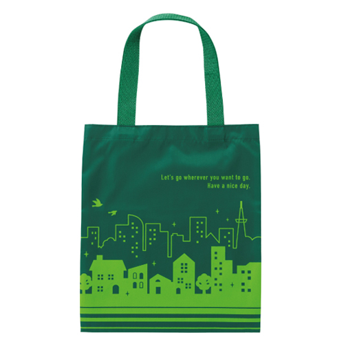使う人を選ばない、カジュアルな街並みデザインのエコバッグです。