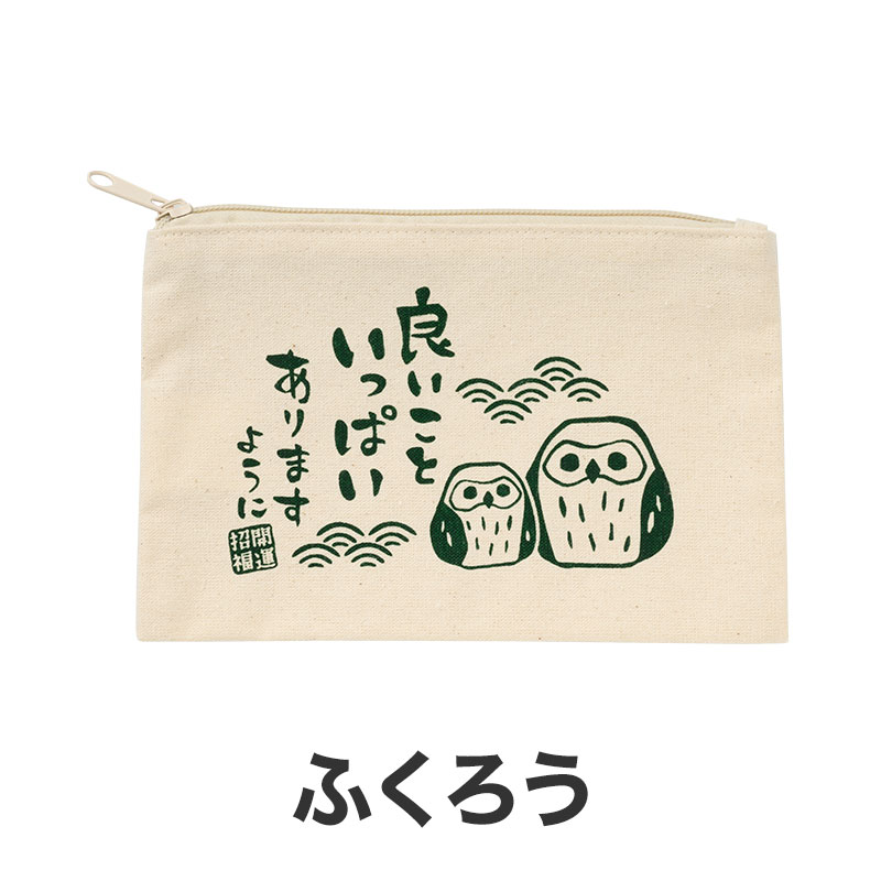 だるま・まねきねこ・ふくろうの3種アソートで、で、縁起の良いモチーフとともに「良いこといっぱいありますように」のメッセージをプリント。